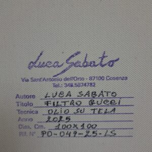 Con questo lavoro, voglio spingere l’osservatore a riflettere sulla propria identità nell’era dei brand. “Filtro Gucci” è la domanda su quanto siamo disposti a nascondere il nostro vero volto per indossare lo scintillante, ma ingannevole, prestigio di un logo.